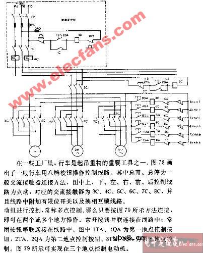 用八档按钮操作的行车控制电路图