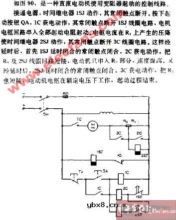 直流电动机使用变阻器起动控制电路图