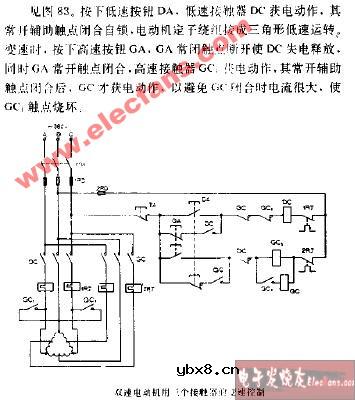 双速电动机用三个接触器的变速控制电路图