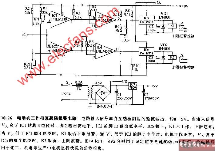 电动机工作电流超限报警电路