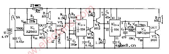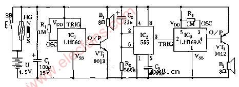 迎客门铃兼狗叫报警电路图