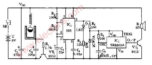 迎客门铃兼防盗报叫语音电路图