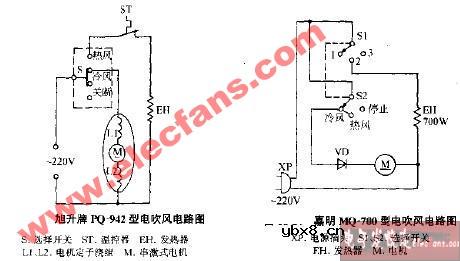 旭升牌PQ-942型电吹风电路图
