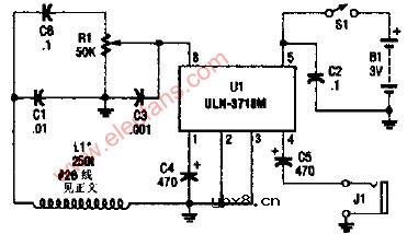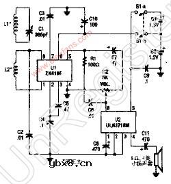 基本调幅(AM)接收电路 采用单个ZN416EIC和一个ULN371RM,这个简单的射频调谐接收机能够驱动一个扬声器,两个1.5V的电池为该电路供电。