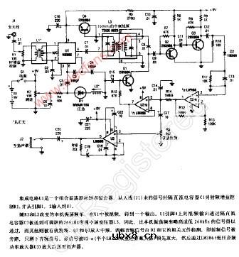 27.145MHz的窄带调频(NBFM)接收机 该电路采用一个Motoroia MC3363LSI(大规模集成电路)单片调频(FM)接收机,它是一个具有10.7KHZ中频(IP)电路的双重转换FM接收机,IC4提供能量驱动一个小扬声器。
