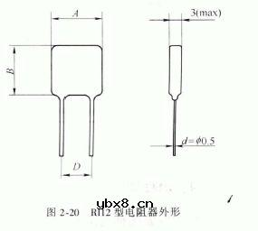 RⅡ-8 型无引线金属膜电阻器是一种新型电阻器,其主要特点是比功率大,精度高,温度系数小,稳定性及高频特性好。该电阻器特别适用于装配密度大的电子线路中,可进行表面安装。电阻器的外形结构如图2-11(d) 所示,主