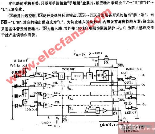 四路独立手触开关电路