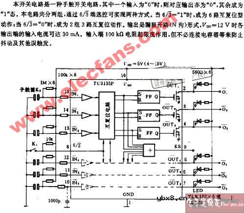 六路互复位型手触开关电路