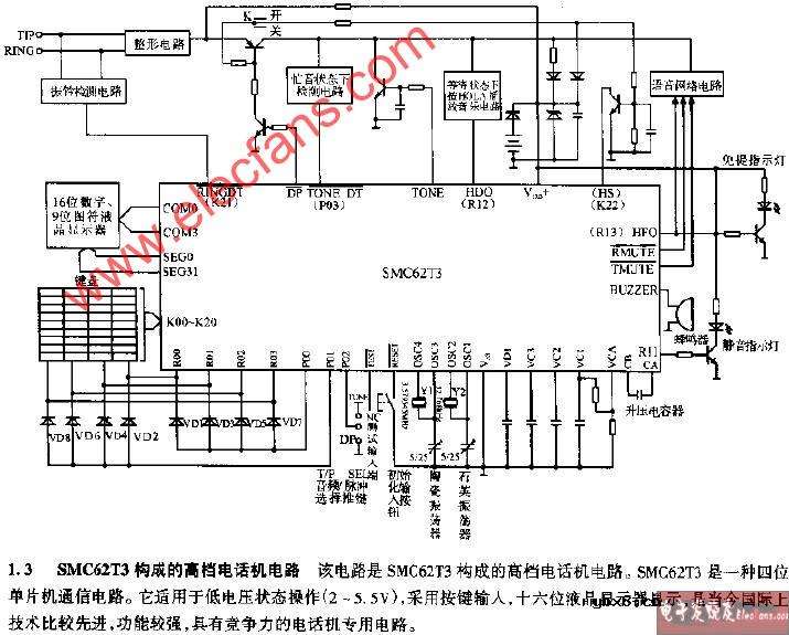 SMC62T3构成的高档电话机电路