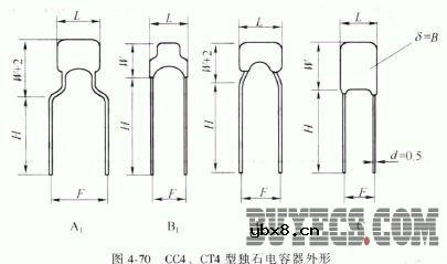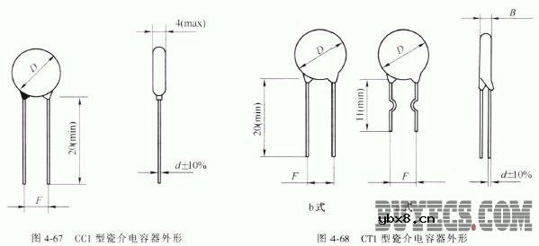 CT1型瓷介电容器 CT1型瓷介电容器为圆片形结构、单向引出,适合印刷电路板安装,具有体积小、容量大的特点,适用于旁路、耦合及鉴频电路中,广泛用在仪器仪表及电子设备中。其外形如图4-68。