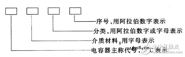 电容器的命名 和电阻一样,电容器的命名也有一定的规定,在国产电容器中,根据国家标准GB2470-81的规定主要包括4个部分,依次表示为:主称部分、介质材料、电容器类别和电容器序号。从下图中也能很明显看